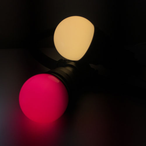 ? Les guirlandes double couleurs Ma Guinguette proposées en location sont d'une longueur de 10 mètres pour 20 globes ampoules double teintes E27. Connectables entre-elles sur plusieurs centaines de mètres permettant de réaliser l'éclairage complet d'un événement sur une simple prise 16A. Le câble supporte une puissance de 2200w. L'espacement entre les ampoules bi coloris est de 50 cm afin de conserver une mise en lumière homogène. La guirlande est composée d'ampoules leds ? globe leds bicolores pour une faible consommation. Ces guirlandes répondent ? la norme IP44, vous donnant la possibilité de faire des mises en éclairage en extérieur comme en intérieur. Idéal pour un diner dehors en plein été avec l'ensemble de vos convives.