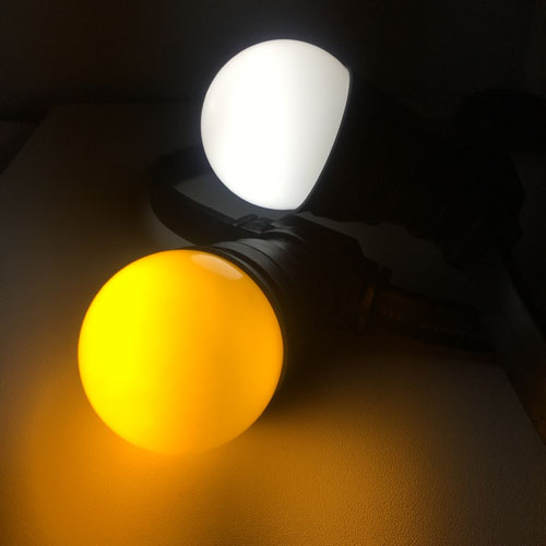 ? Les guirlandes double couleurs Ma Guinguette proposées en location sont d'une longueur de 10 mètres pour 20 globes ampoules double teintes E27. Connectables entre-elles sur plusieurs centaines de mètres permettant de réaliser l'éclairage complet d'un événement sur une simple prise 16A. Le câble supporte une puissance de 2200w. L'espacement entre les ampoules bi coloris est de 50 cm afin de conserver une mise en lumière homogène. La guirlande est composée d'ampoules leds ? globe leds bicolores pour une faible consommation. Ces guirlandes répondent ? la norme IP44, vous donnant la possibilité de faire des mises en éclairage en extérieur comme en intérieur. Idéal pour un diner dehors en plein été avec l'ensemble de vos convives.