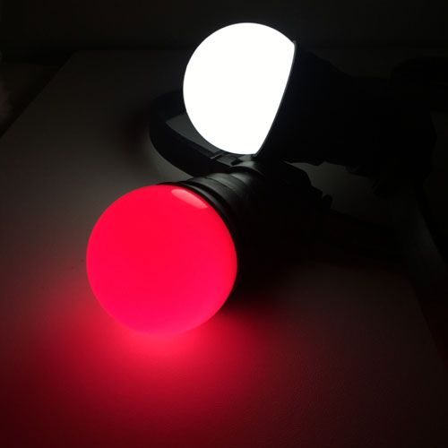 ? Les guirlandes double couleurs Ma Guinguette proposées en location sont d'une longueur de 10 mètres pour 20 globes ampoules double teintes E27. Connectables entre-elles sur plusieurs centaines de mètres permettant de réaliser l'éclairage complet d'un événement sur une simple prise 16A. Le câble supporte une puissance de 2200w. L'espacement entre les ampoules bi coloris est de 50 cm afin de conserver une mise en lumière homogène. La guirlande est composée d'ampoules leds ? globe leds bicolores pour une faible consommation. Ces guirlandes répondent ? la norme IP44, vous donnant la possibilité de faire des mises en éclairage en extérieur comme en intérieur. Idéal pour un diner dehors en plein été avec l'ensemble de vos convives.