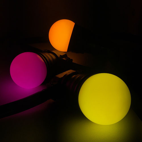 - 20 globes lumineux de 1 Watts par guirlande - Espacement de 50 cm ;